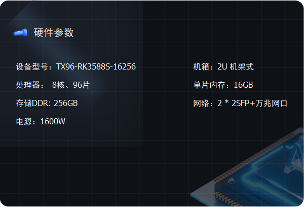 ? ? ? ? ? ?標(biāo)準(zhǔn)2U機架列陣服務(wù)器,最高可配置96片高性能模塊,極致算力,抽屜式插拔設(shè)計,支持安卓android、unbuntu、centos等多種操作系統(tǒng)。